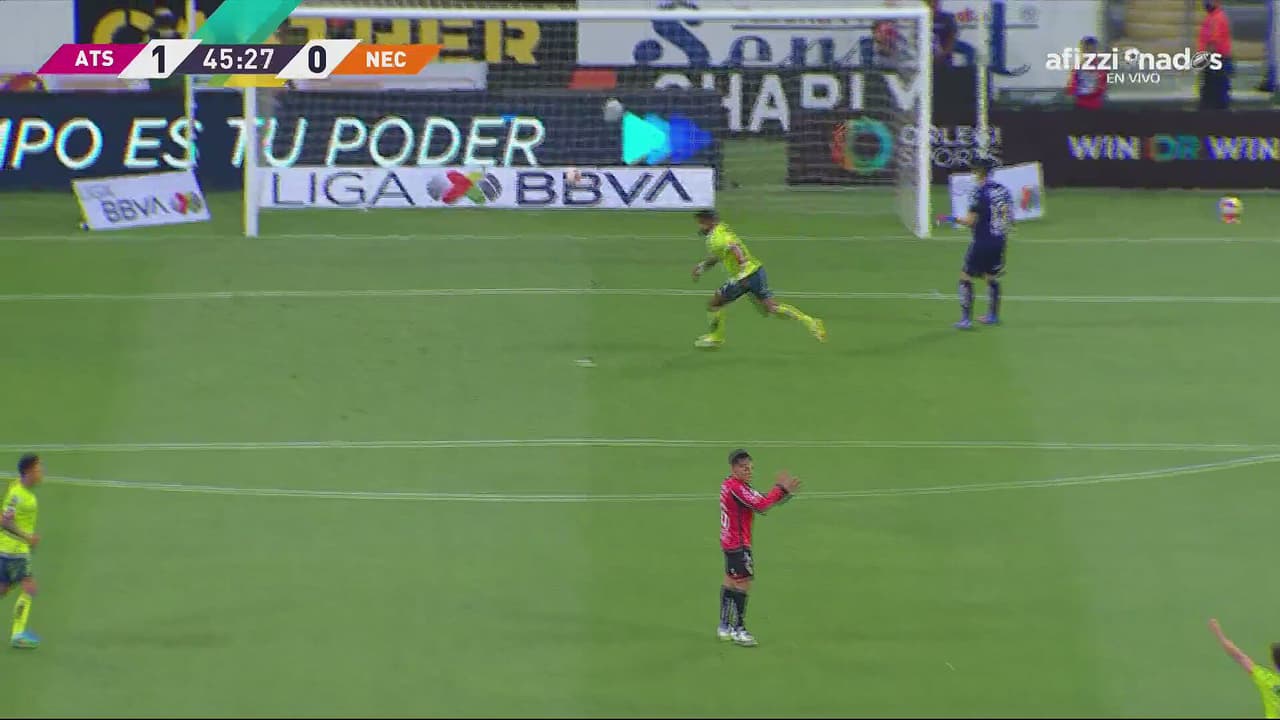 Rodrigo tapó con las manos el despeje de Vargas que terminó en las redes de Atlas al 44’.