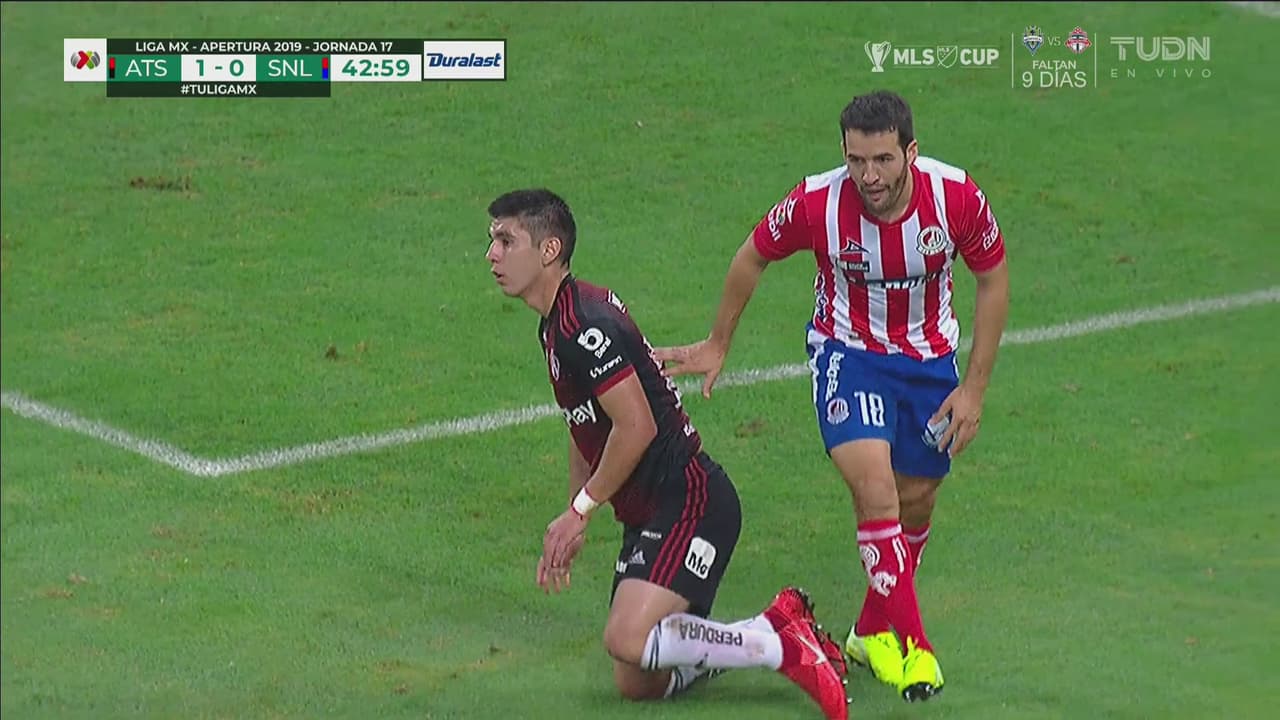 El uruguayo toó un rebote en los linderos del área chica para meter un remate de aire, con la pierna izquierda, pero su envío se fue por encima al 43’.