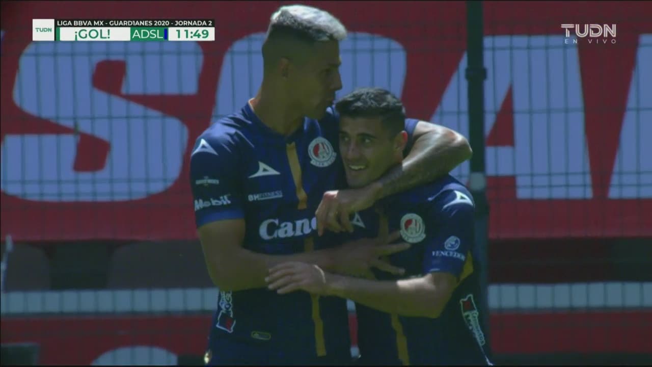 Enseguida fue el turno del Atlético de San Luis que despertó con ese balde de agua fría. Nico Ibáñez se fue por la banda izquierda y centró a segundo poste para que Germán Berterame cerrara la pinza y empatara para el San Luis.