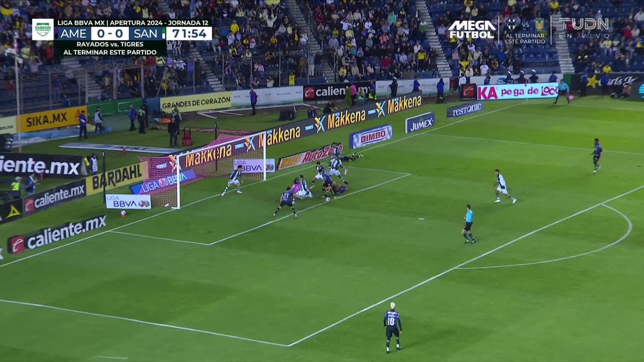 El américa busca el gol a como de lugar y en esta jugada hubo tiros, rechaces y atajadas, todo en menos de 1 minuto.