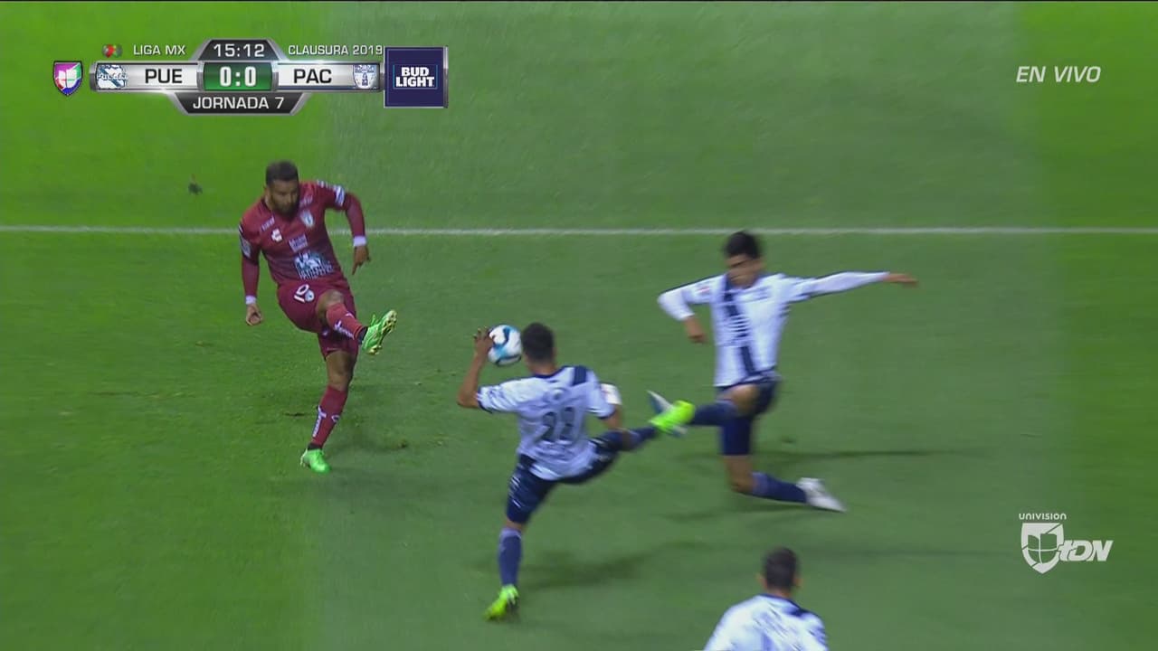 El volante colombiano definió con una ‘vaselina’ pero el balón se fue desviado y se salvó el Puebla del Chelís.