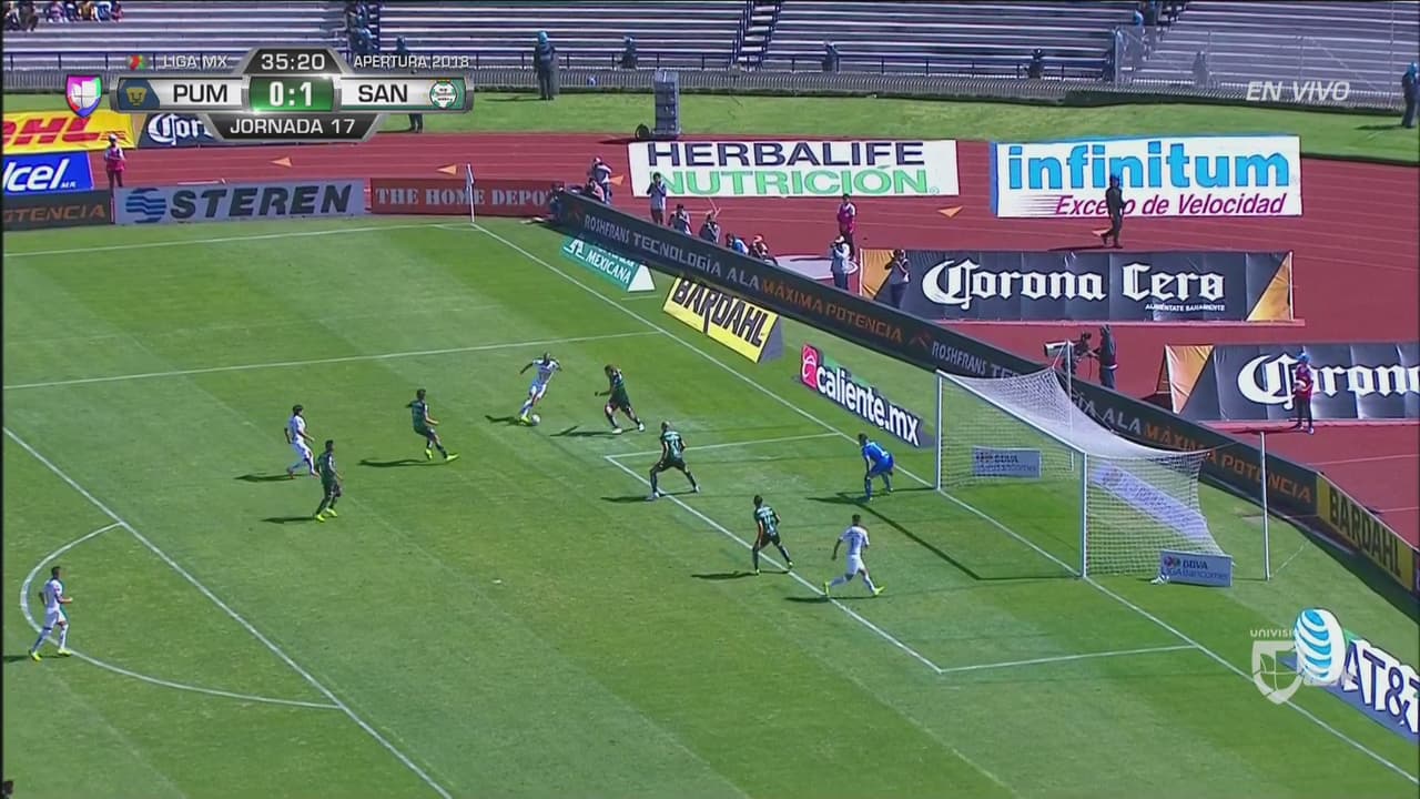 El delantero paraguayo recorta y se quita la marca rival para meterse al área de Orozco, sin embargo, la posición no le favorece y termina desperdiciando su esfuerzo.