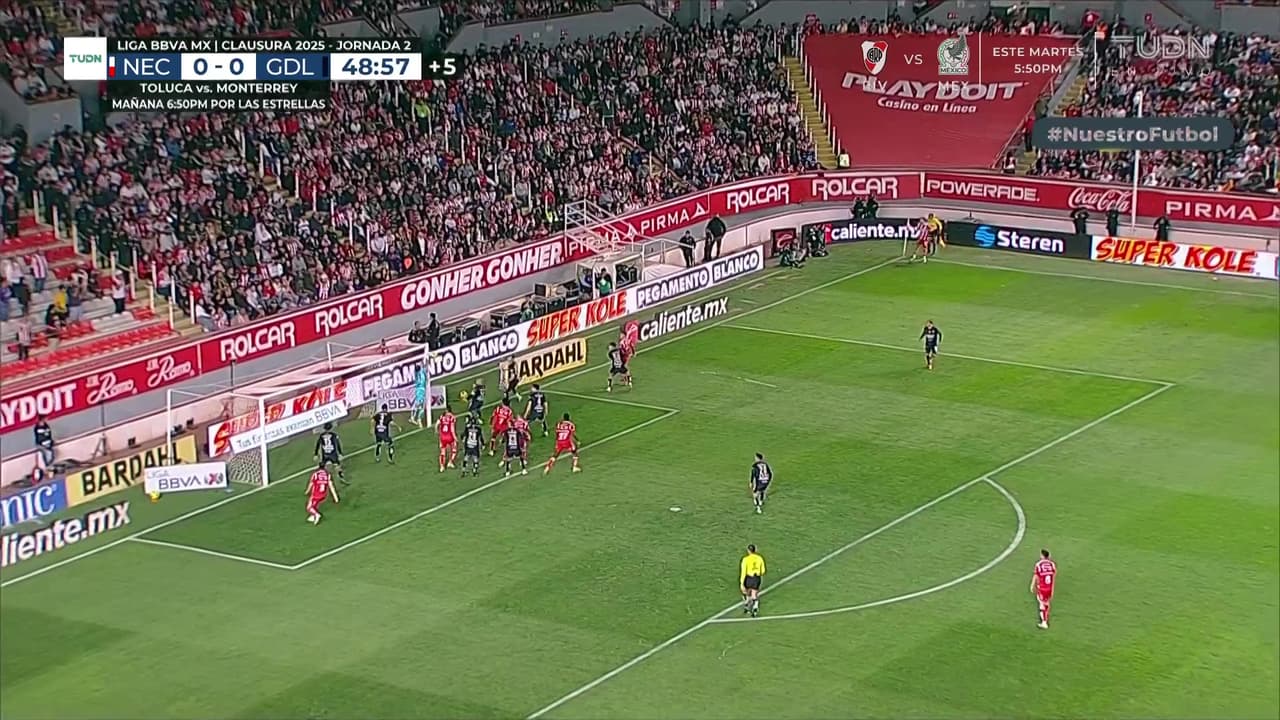 El poste niega lo que pudo ser un golazo para el Necaxa y el partido se mantiene en igualdad.