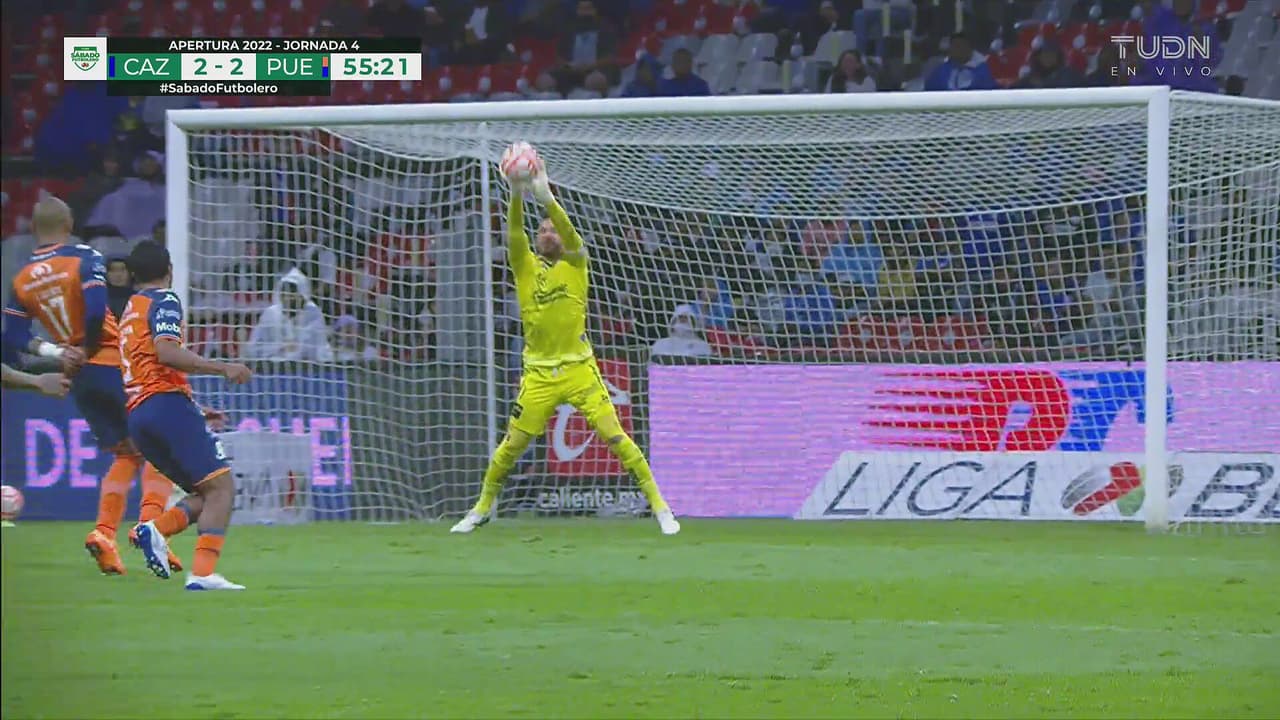 Uriel se buscó el espacio y el portero del Puebla evita problemas desviando el balón al 55’.