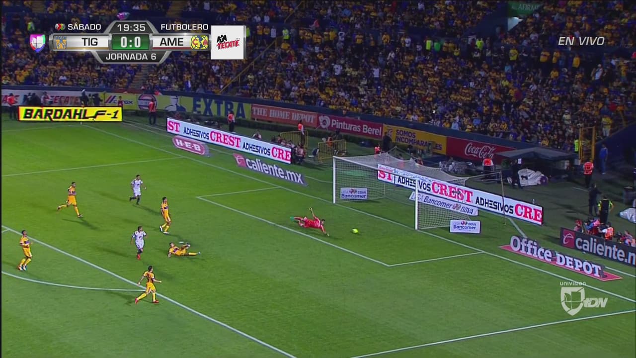 Gran jugada individual del paraguayo que acabó con un disparo al poste.
