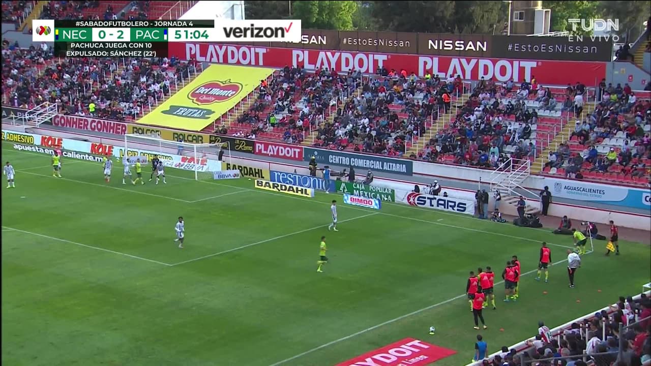 Alan Medina (Necaxa) remata al poste izquierdo| zurdazo desde el lado derecho dentro del área. Asistencia de Dieter Villalpando tras un saque de esquina.