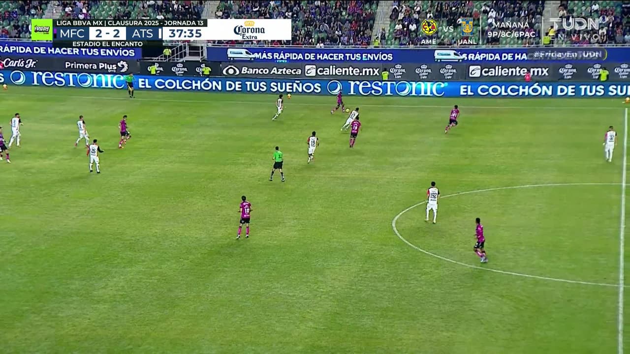 Alan Torres (Mazatlán FC) remata palo| Disparo con la derecha desde el centro del área.