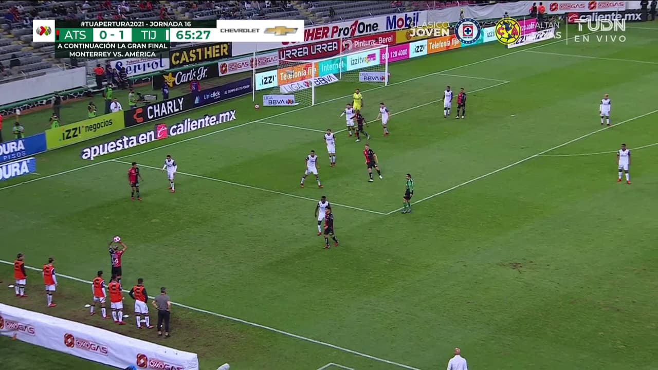 Aldo Rocha (Atlas) remata al poste izquierdo| Disparo con la derecha desde fuera del área.