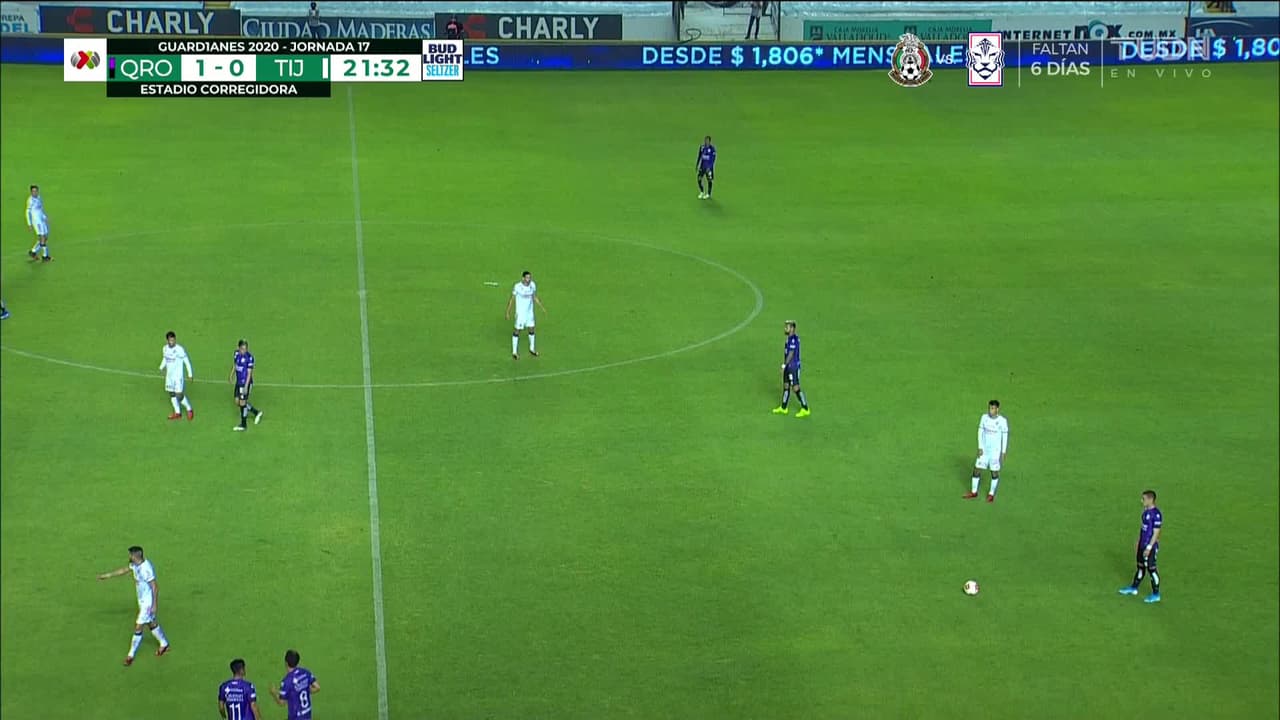 Ángel Sepúlveda (Querétaro) remata al poste derecho| disparo de cabeza desde el centro del área. Asistencia de Irving Zurita con un centro al área.