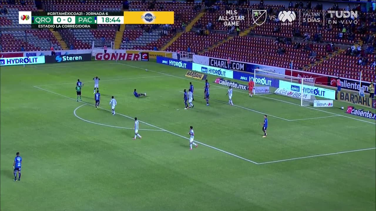 Avilés Hurtado (Pachuca) remata palo| Disparo con la derecha desde el lado izquierdo dentro del área.