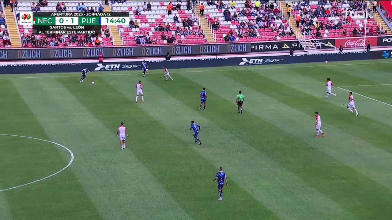 Brayan Garnica (Necaxa) remata al travesaño| Disparo con la derecha desde fuera del área. Asistencia de Facundo Batista pase largo.