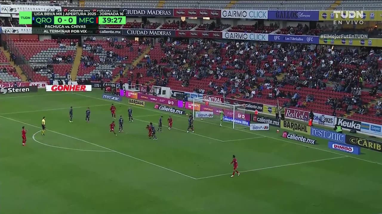 Bryan Colula (Mazatlán FC) remata al travesaño| zurdazo desde el centro del área.