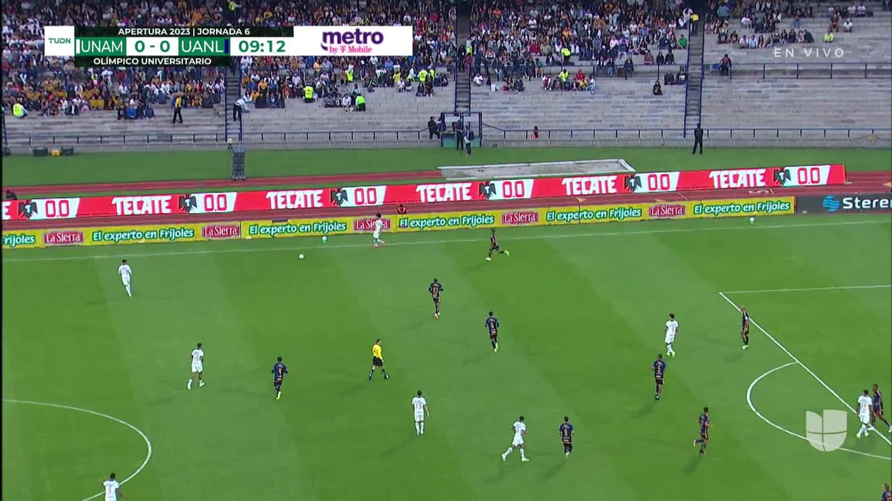 César Huerta (Pumas UNAM) remata al poste derecho| Disparo con la derecha desde el centro del área. Asistencia de Pablo Bennevendo con un centro al área.