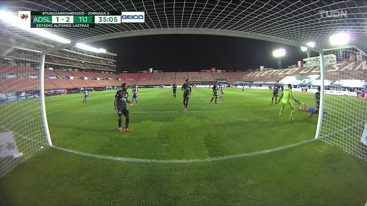Damián Batallini (Atlético San Luis) remata palo| zurdazo desde el lado izquierdo dentro del área.