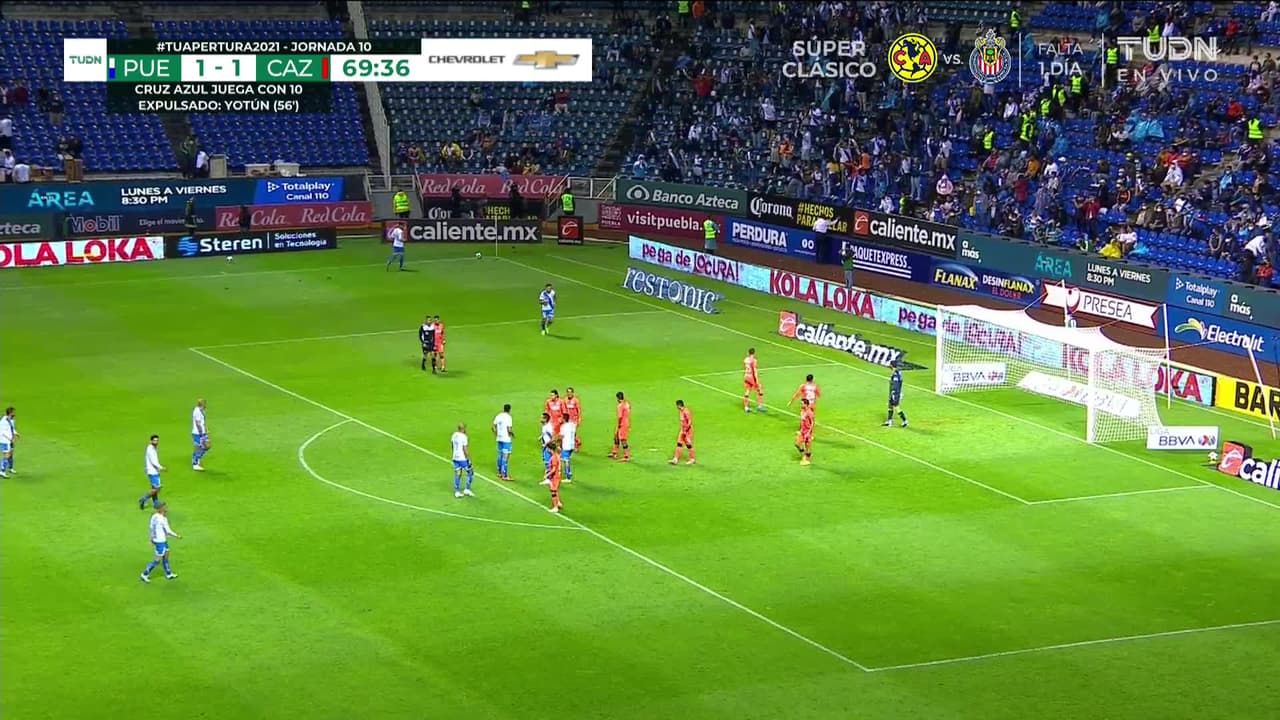 Diego de Buen (Puebla) remata poste| remate con la izquierda a quemarropa desde el lado izquierdo tras un saque de esquina.