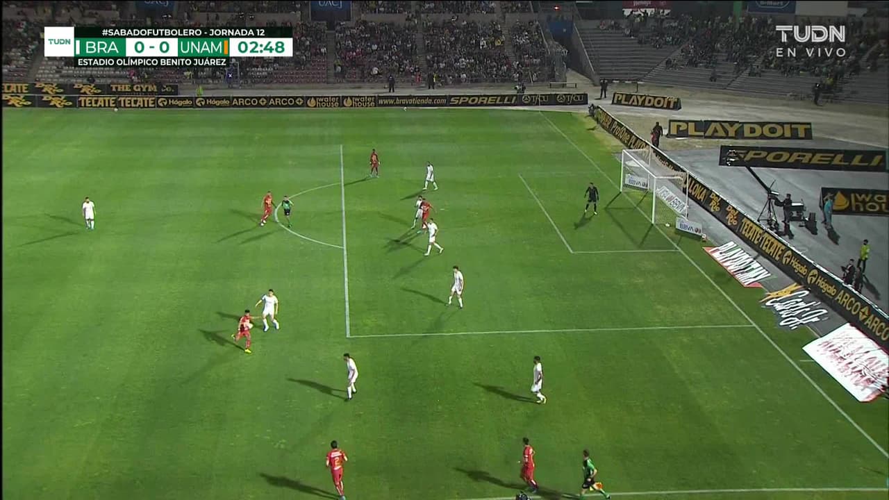 Diogo (Pumas UNAM) remata palo| zurdazo desde el centro del área.