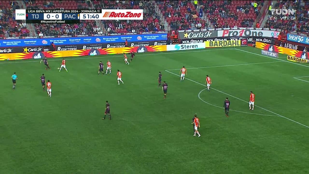 Domingo Blanco (Club Tijuana) remata palo| Disparo con la derecha desde el centro del área.