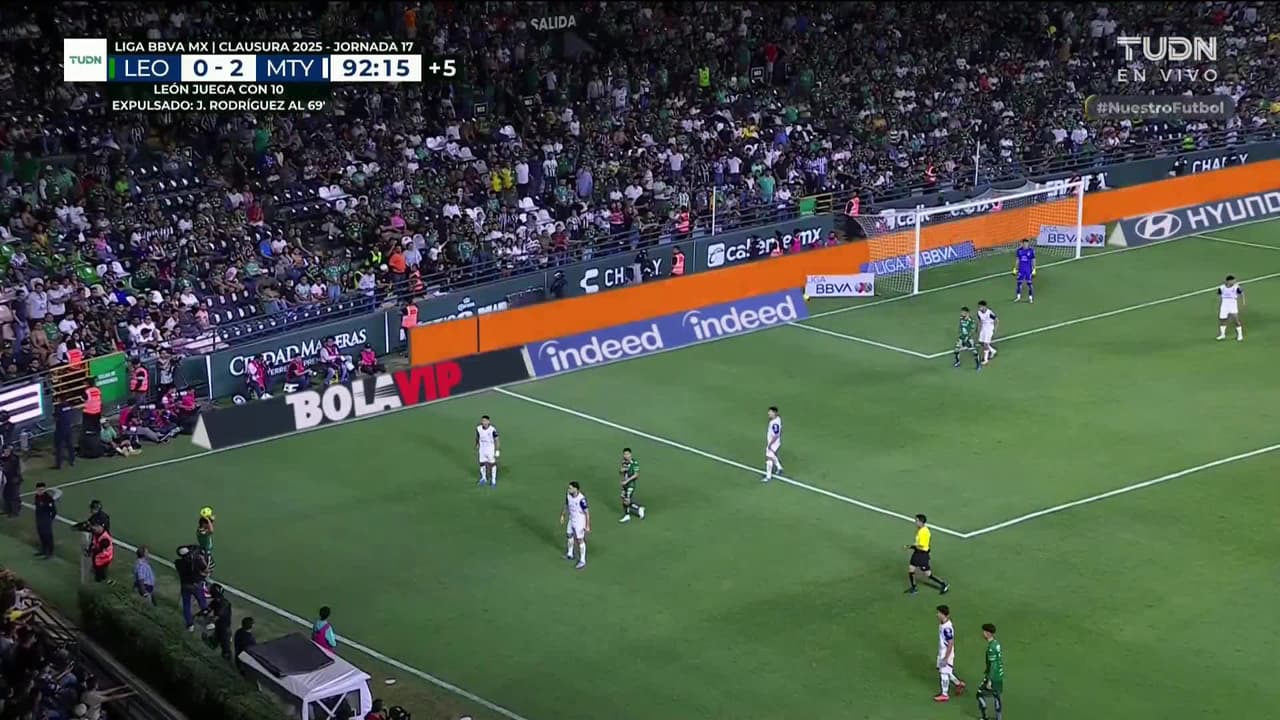 Edgar Guerra (León) remata palo| Disparo con la derecha desde fuera del área.