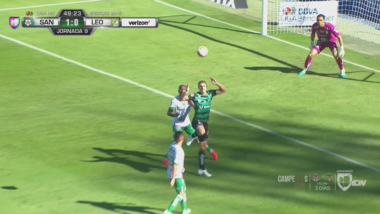 Una jugada creada entre Jesús Isijara y Julio Furch terminó haciendo temblar a la defensa y afición de León. Los locales buscan el gol que amarre el triunfo.