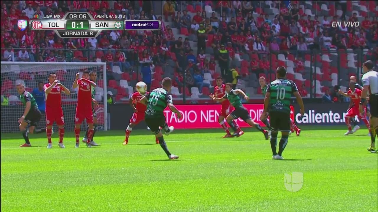 ¡Cerca el segundo para Santos! De un disparo a balón parado, Lozano pone a temblar el infierno
