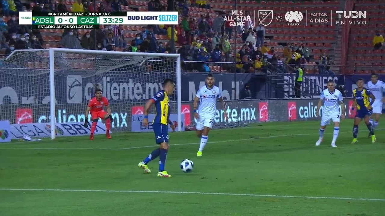 Emmanuel García (Atlético San Luis) remata palo| Disparo con la derecha desde el lado izquierdo dentro del área.