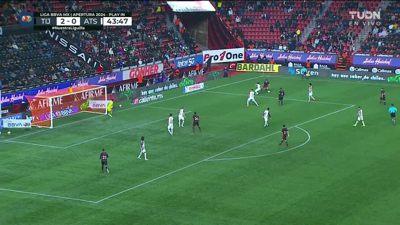 Fernando Monárrez (Club Tijuana) remata palo| Disparo con la derecha desde el centro del área.
