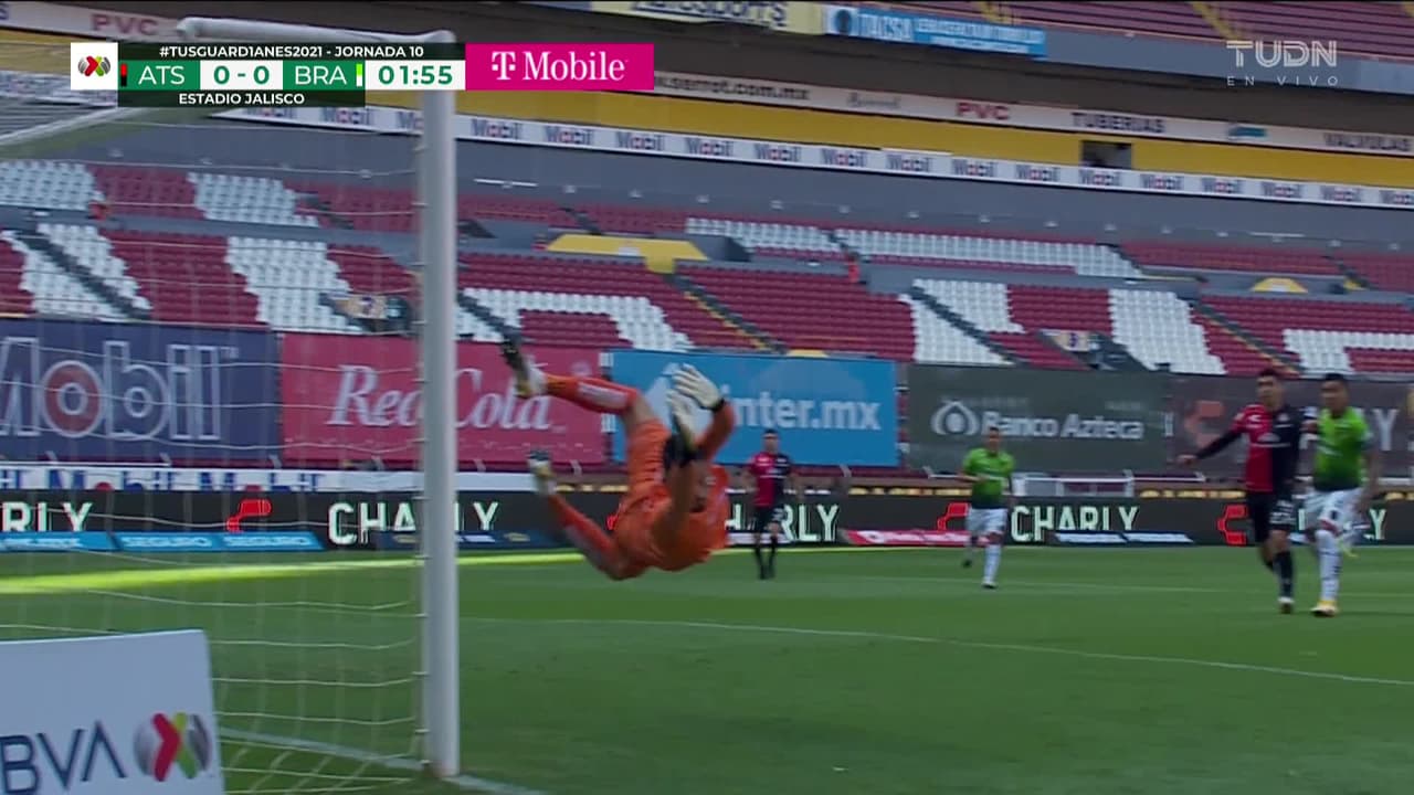 Flavio Santos (FC Juárez) remata al poste izquierdo| Disparo con la derecha desde fuera del área. Asistencia de Darío Lezcano.
