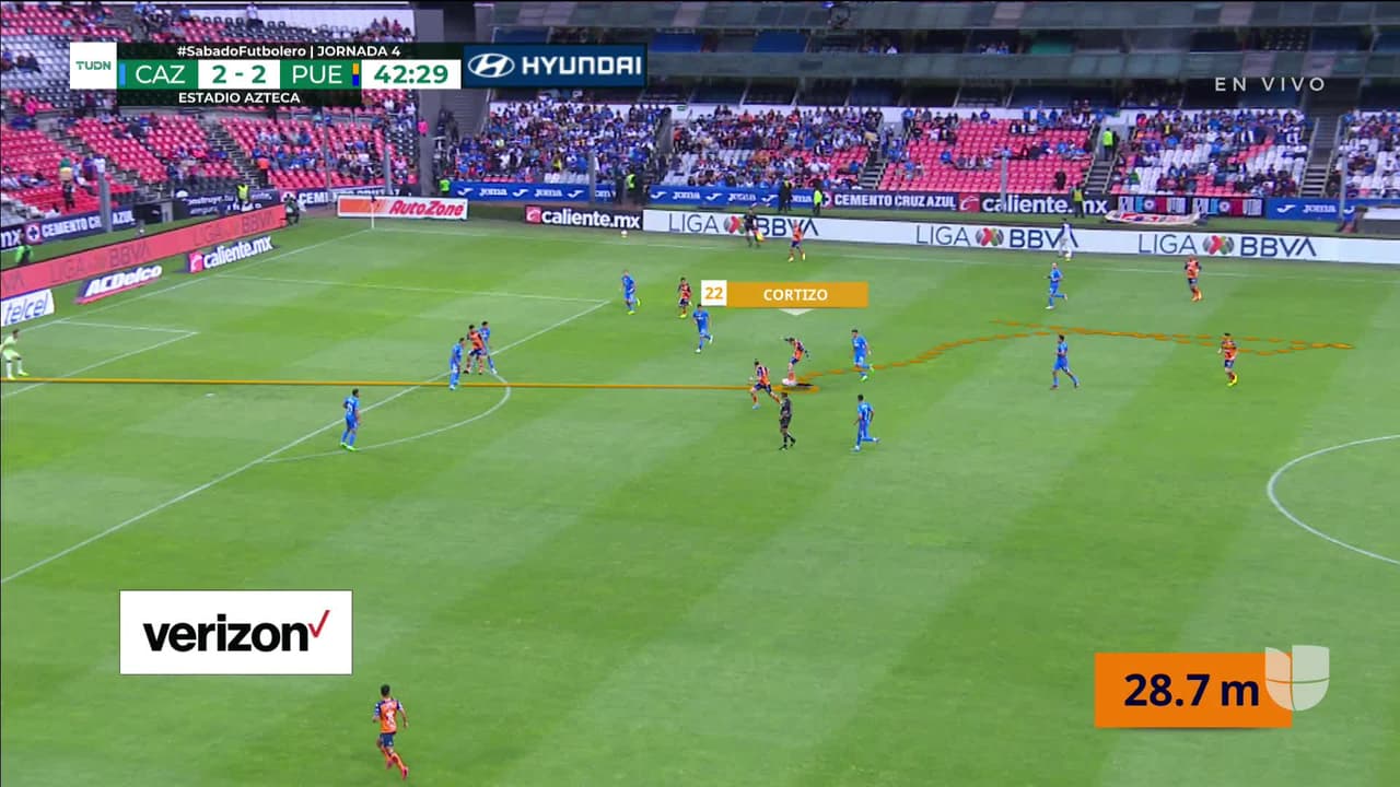 Ivo Vázquez (Puebla) remata al poste derecho| Disparo con la derecha desde el lado izquierdo dentro del área. Asistencia de Omar Fernández.
