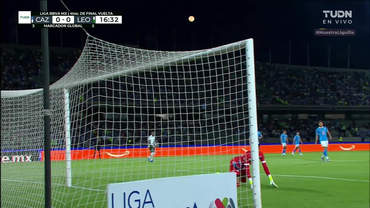 Jhonder Cádiz (León) remata al travesaño| Disparo con la derecha desde fuera del área. Asistencia de Iván Moreno.