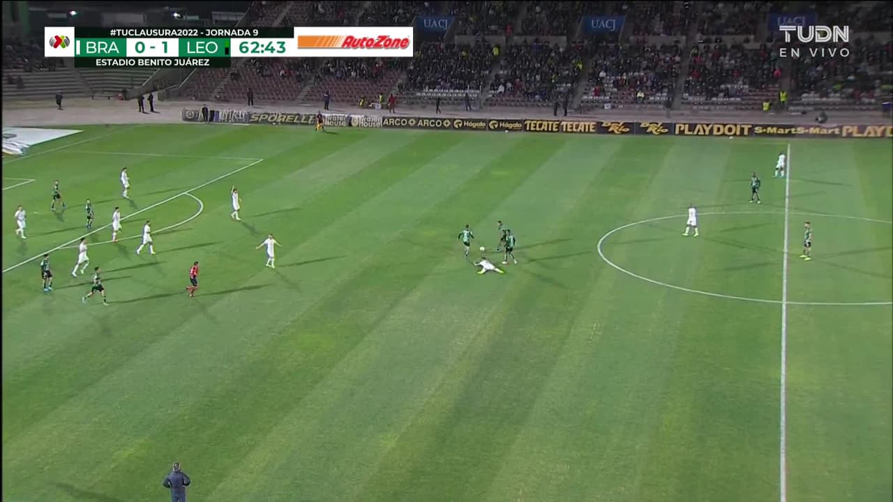 Joaquín Esquivel (FC Juárez) remata al poste izquierdo| Disparo con la derecha desde el centro del área.