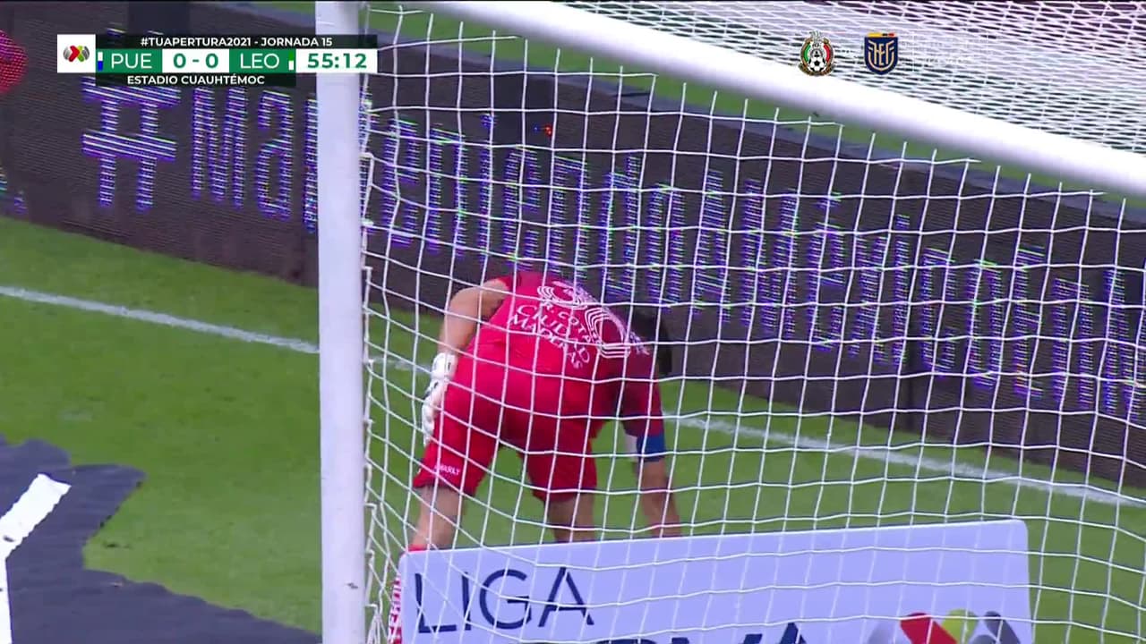 Juan Pablo Segovia (Puebla) remata al poste izquierdo| disparo de cabeza desde el centro del área. Asistencia de Maximiliano Araujo con un centro al área tras un saque de esquina.