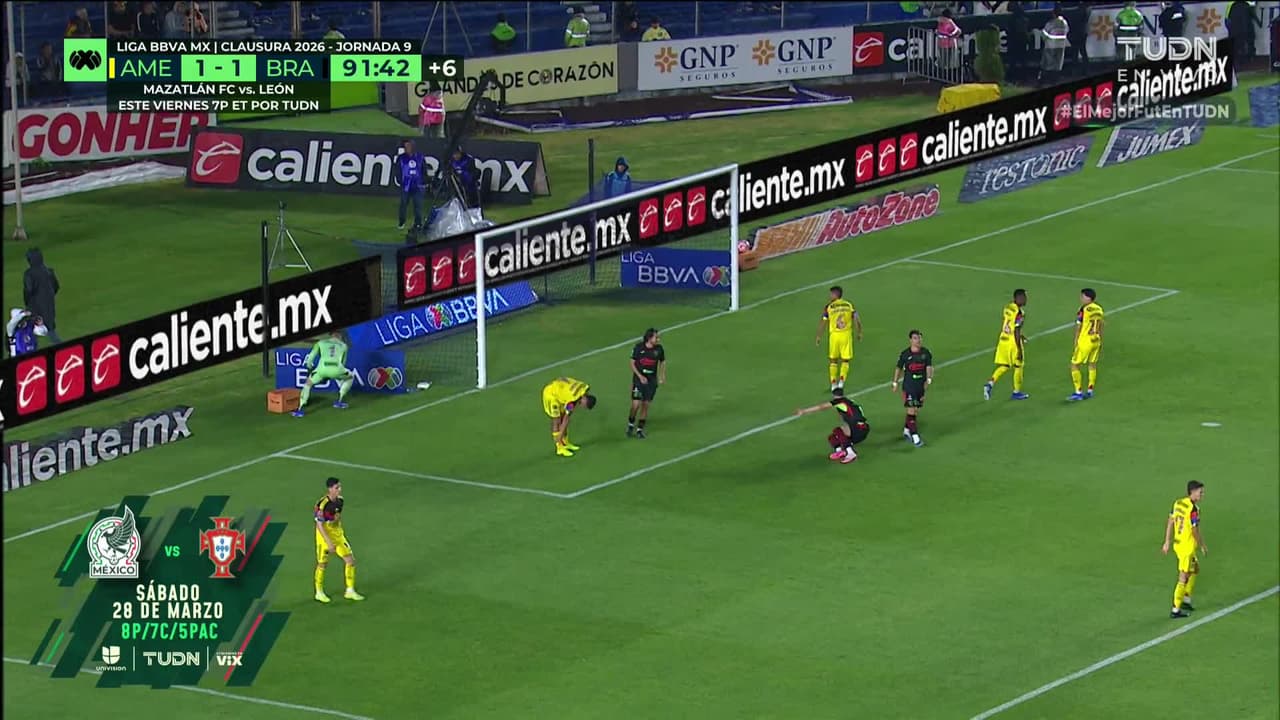 Luca Martínez Dupuy (FC Juárez) remata al travesaño| disparo de cabeza desde el centro del área. Asistencia de Alejandro Mayorga con un centro al área.
