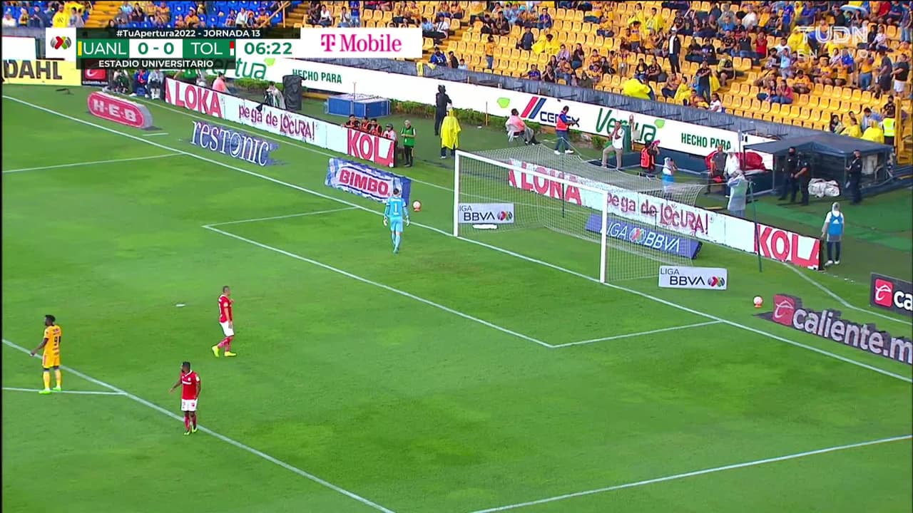 Luis Quiñones (Tigres) remata al travesaño| zurdazo desde fuera del área. Asistencia de André-Pierre Gignac.