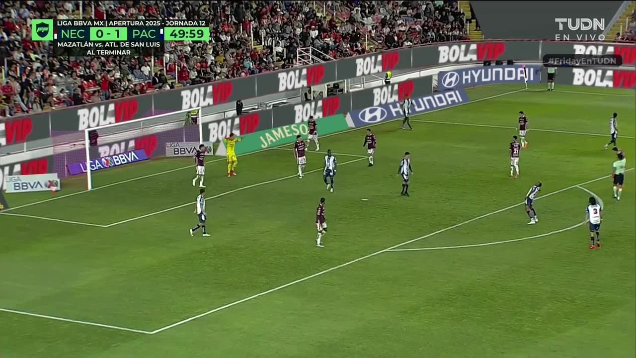 Luis Quiñones (Pachuca) remata al travesaño| zurdazo desde el centro del área. Asistencia de Oussama Idrissi.