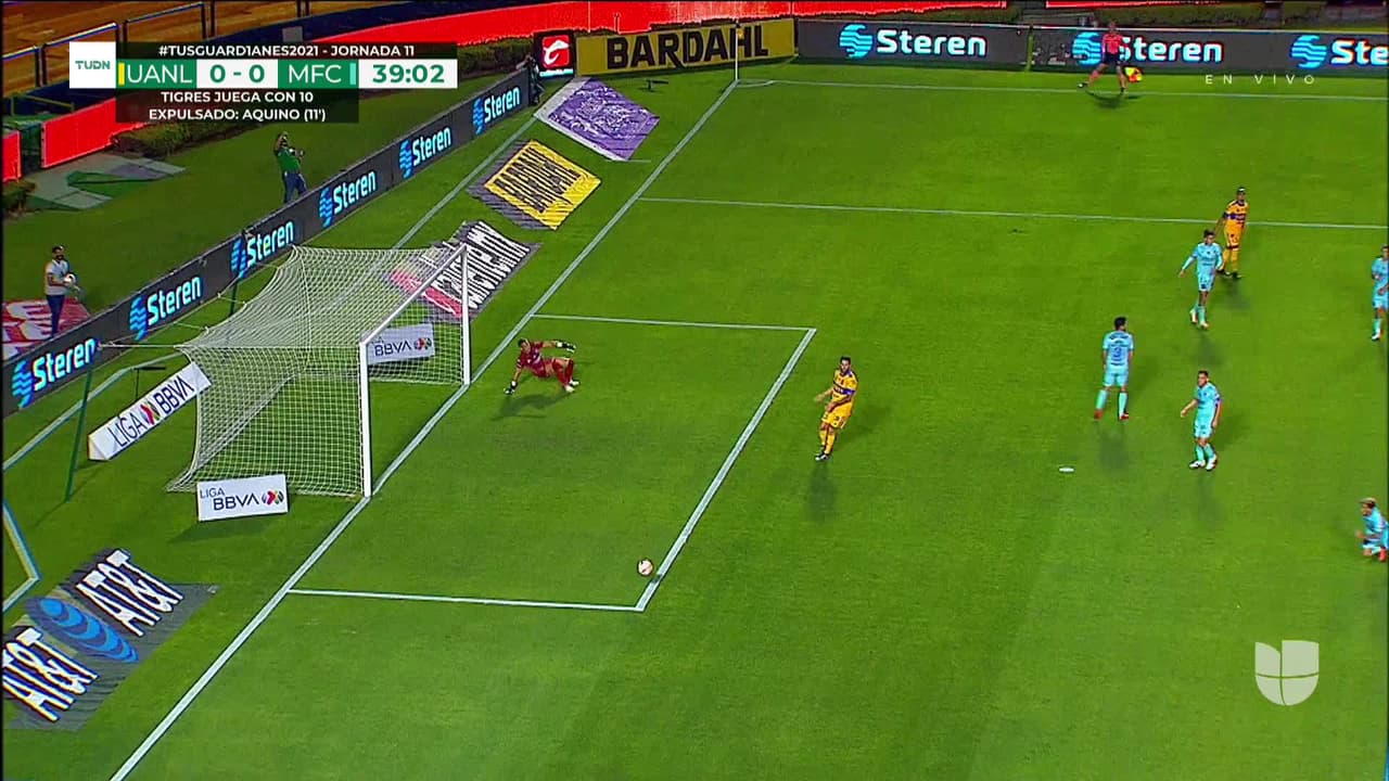 Nicolás López (Tigres) remata al poste derecho| zurdazo desde fuera del área. Asistencia de Luis Rodríguez.