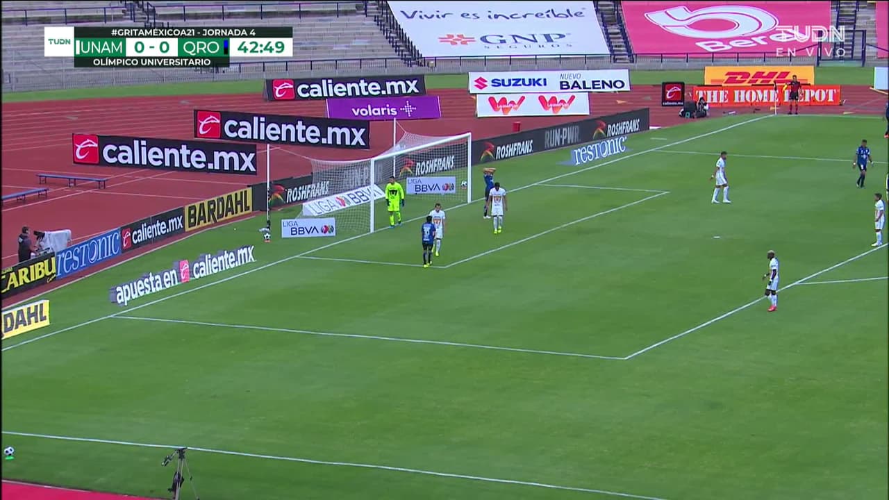 Nicolás Sosa (Querétaro) remata palo| disparo de cabeza desde muy cerca.
