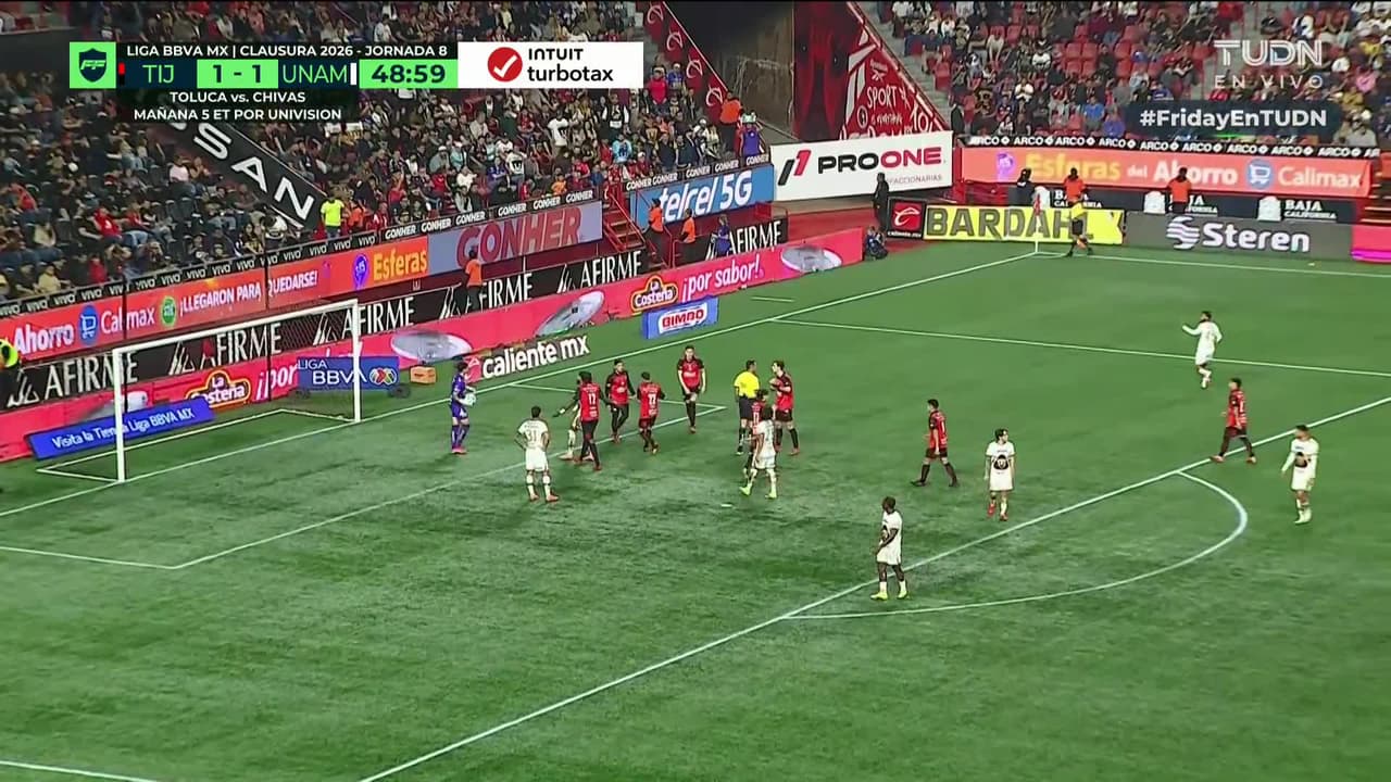 Pedro Vite (Pumas UNAM) remata palo| zurdazo desde fuera del área.