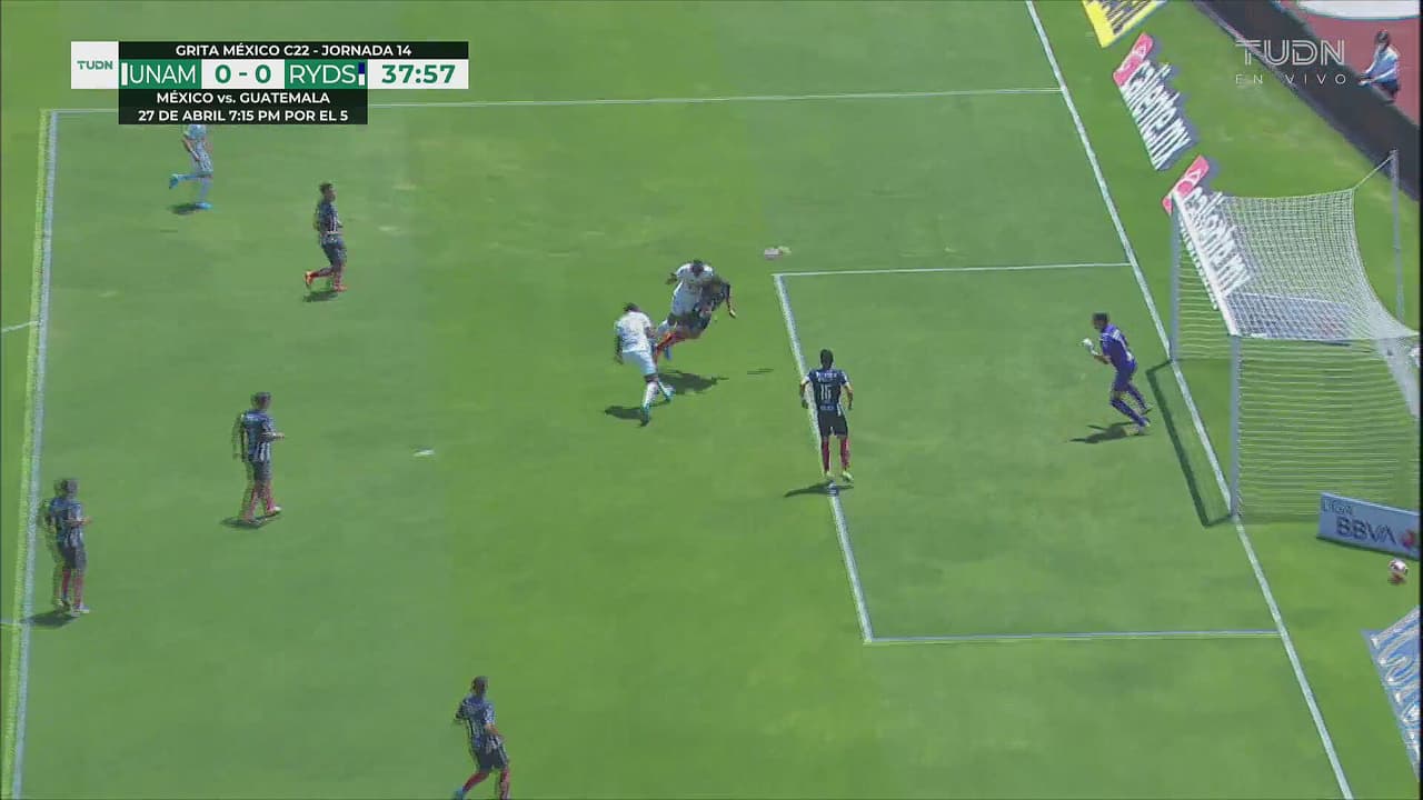 Buen centro de Rogério por la derecha y el delantero de Pumas remató a un lado al 37’.