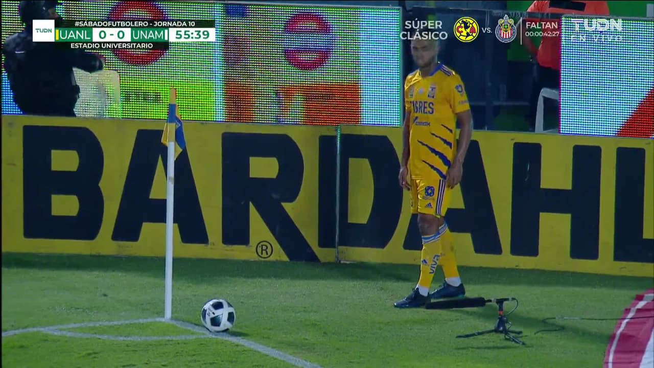 Rafael Carioca (Tigres) remata al poste izquierdo| Disparo con la derecha desde el lado izquierdo dentro del área. Asistencia de Carlos Salcedo con un centro al área.