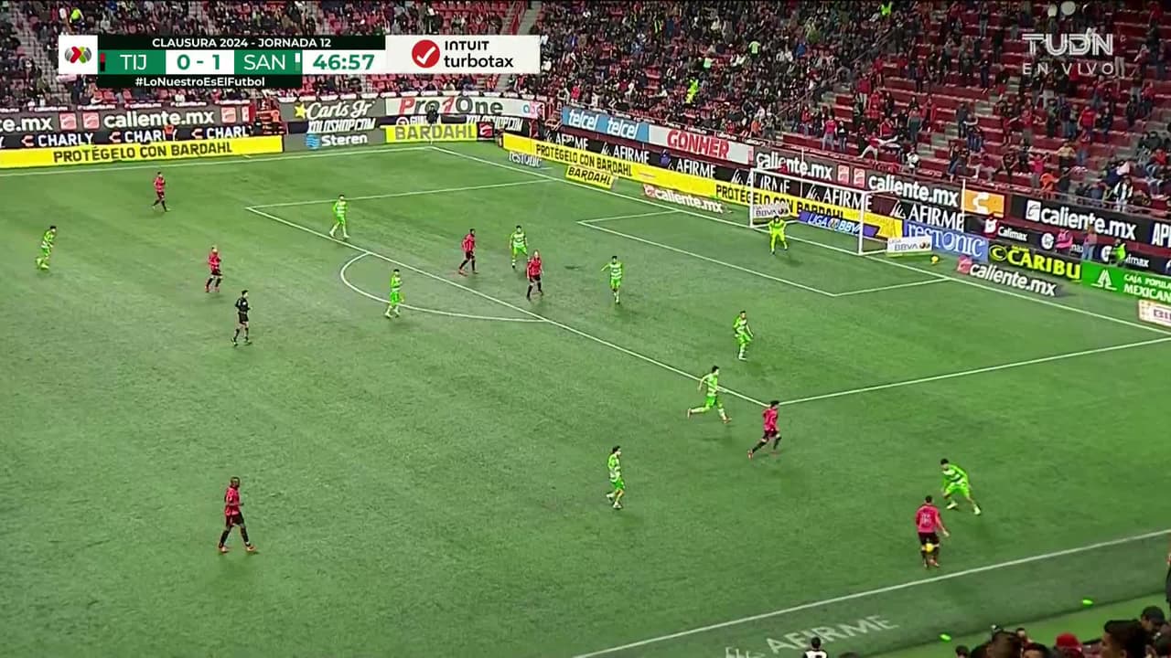 Raúl Zúñiga (Club Tijuana) remata al travesaño| disparo de cabeza desde el centro del área. Asistencia de Diego Barbosa con un centro al área.