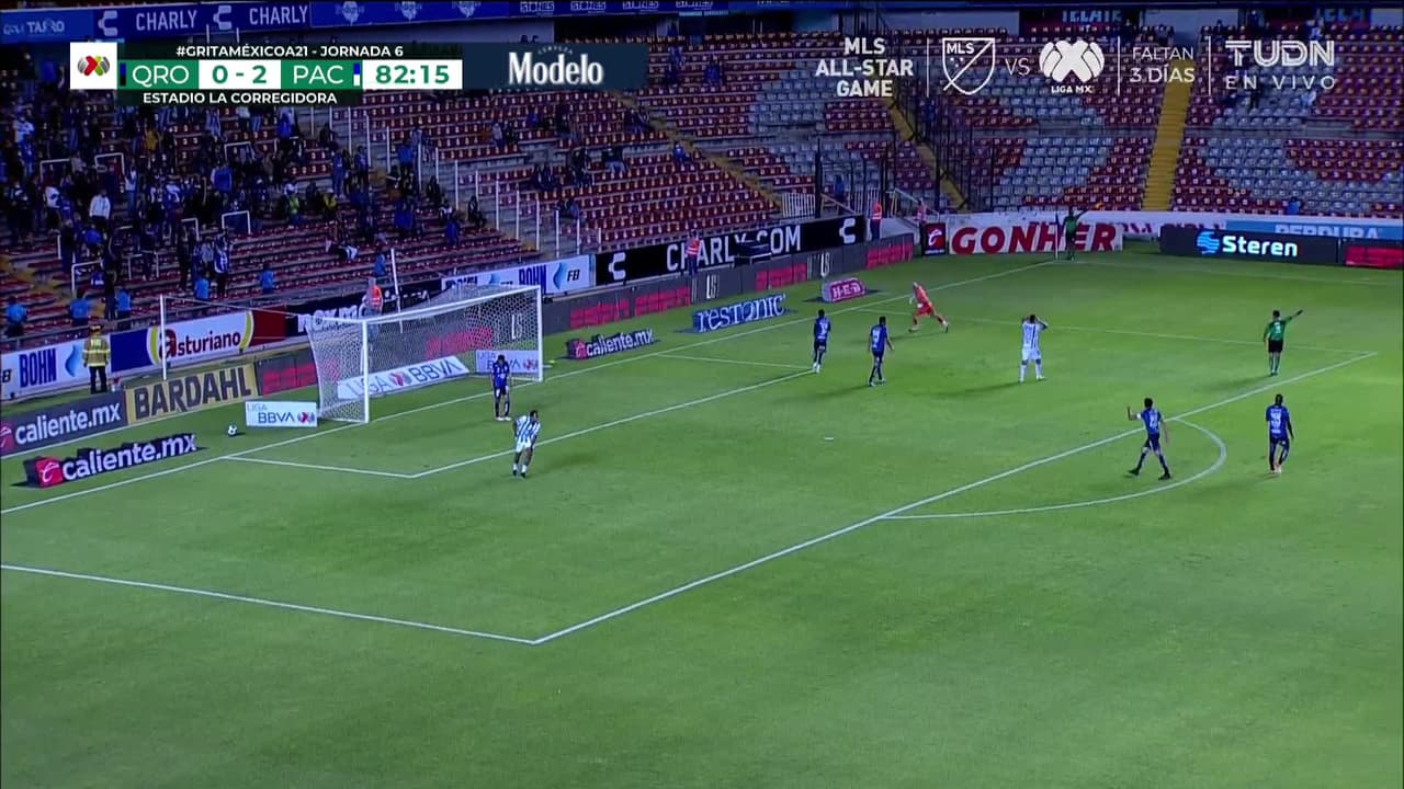 Roberto de la Rosa (Pachuca) remata palo| Disparo con la derecha desde el centro del área.