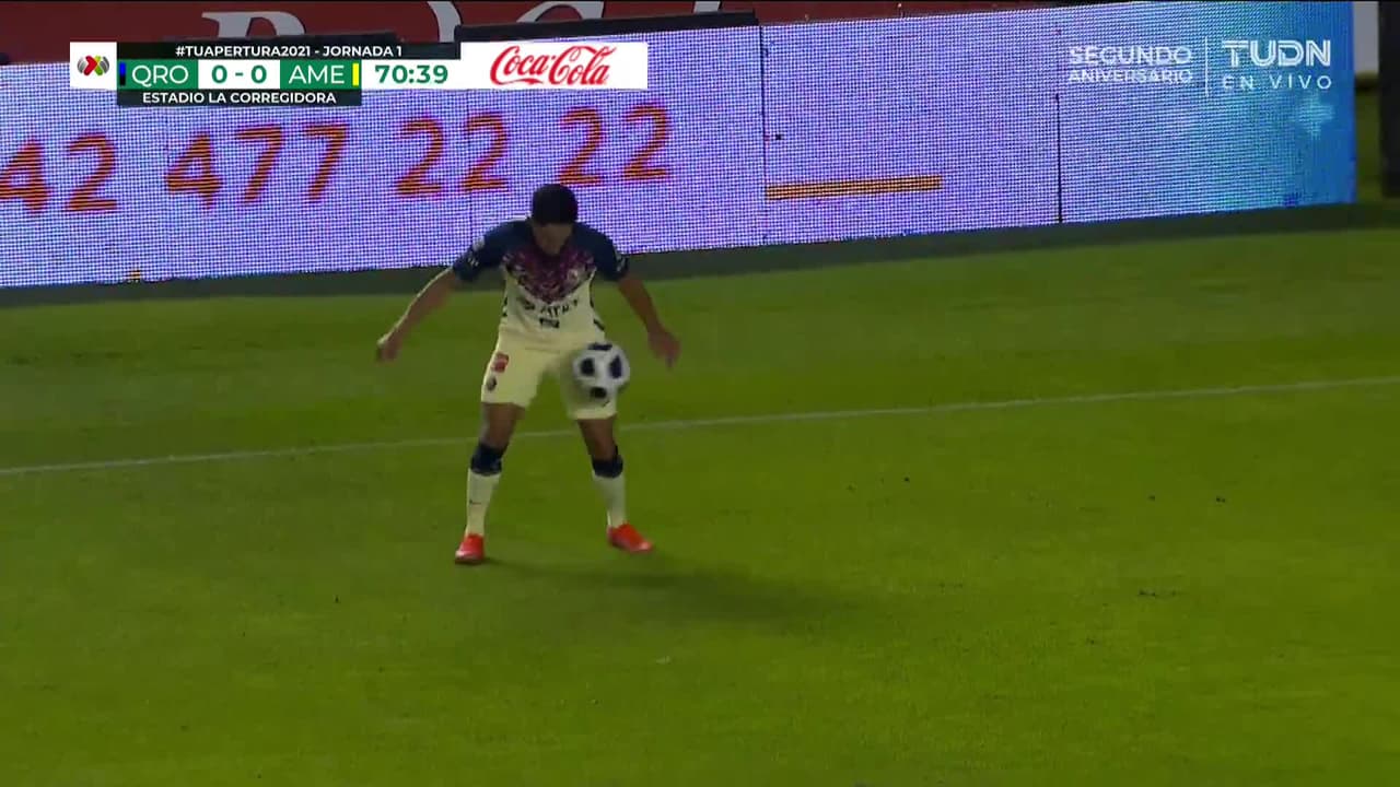 Salvador Reyes (América) remata palo| Disparo con la derecha desde fuera del área.