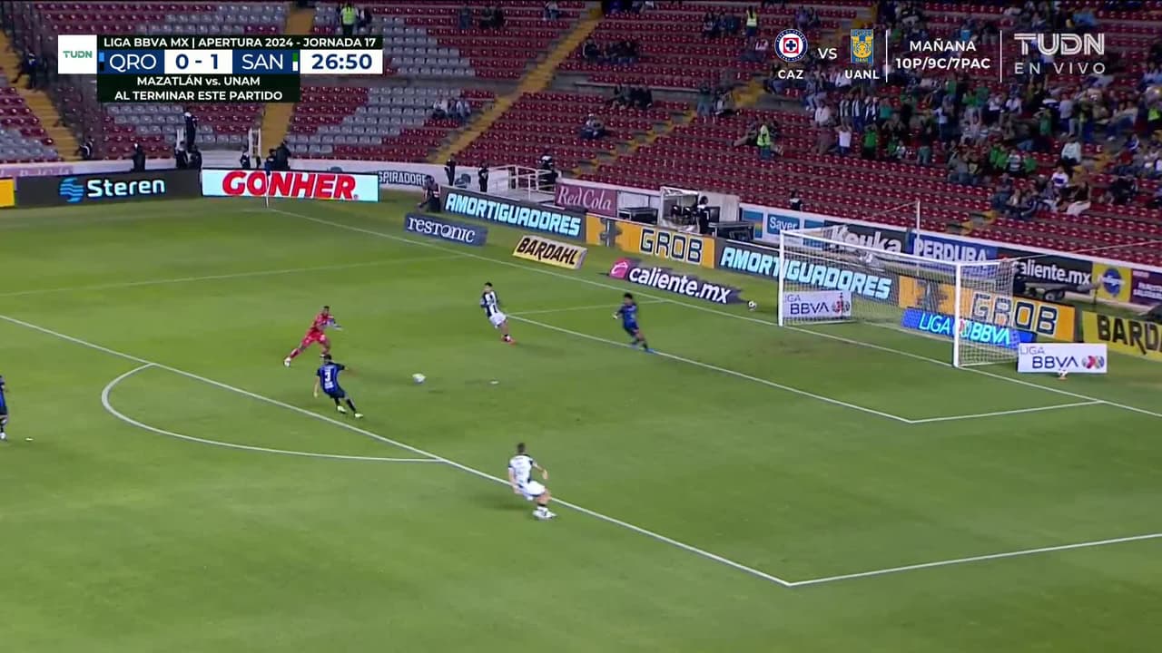 Santiago Muñóz (Santos Laguna) remata palo| Disparo con la derecha desde fuera del área.