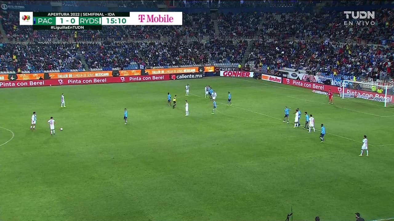 Stefan Medina (Monterrey) remata palo| Disparo con la derecha sin ángulo desde la derecha tras el cobro de una falta.