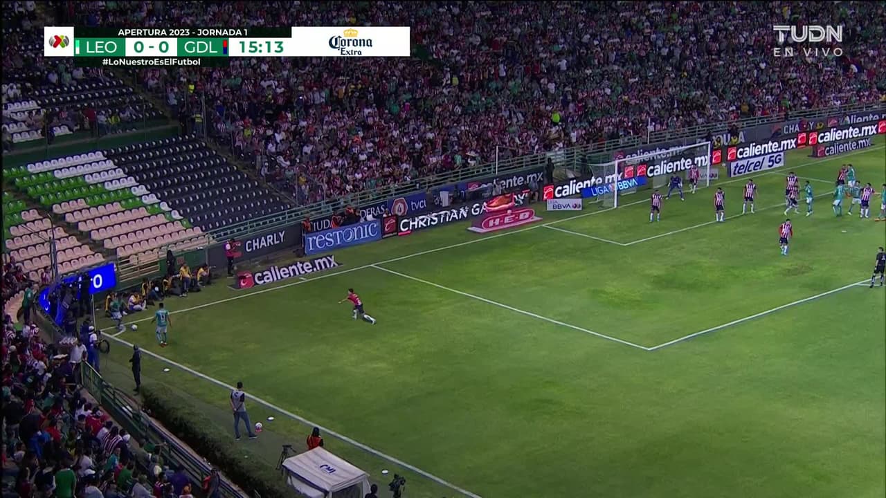Stiven Barreiro (León) remata al travesaño| disparo de cabeza a quemarropa desde el lado derecho. Asistencia de Elías Hernández con un centro al área tras un saque de esquina.