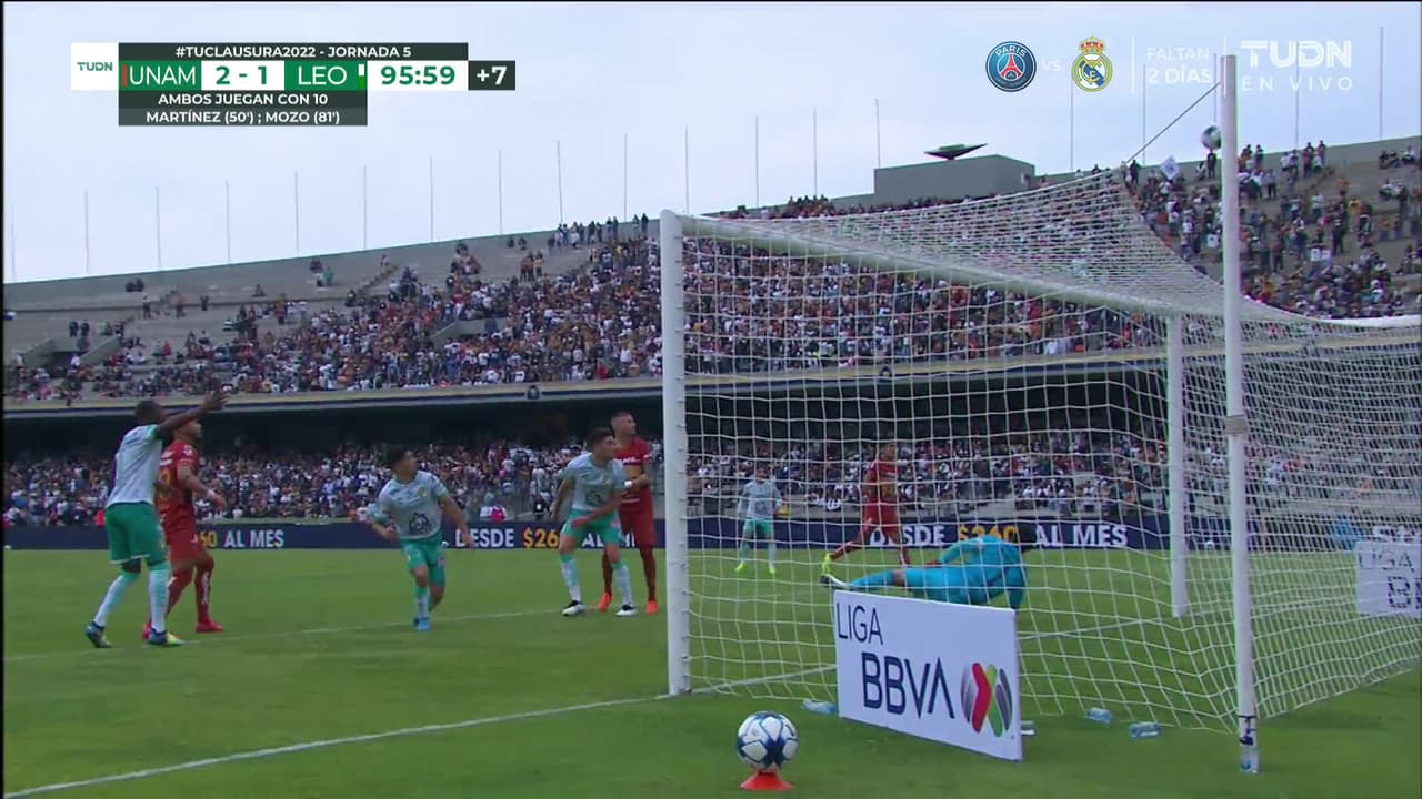Víctor Dávila (León) remata palo| disparo de cabeza desde el centro del área.