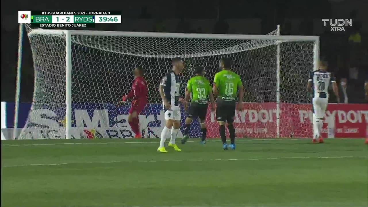 Gustavo Velázquez (FC Juárez) remata al travesaño| disparo de cabeza desde el centro del área. Asistencia de William Mendieta con un centro al área tras un saque de esquina.