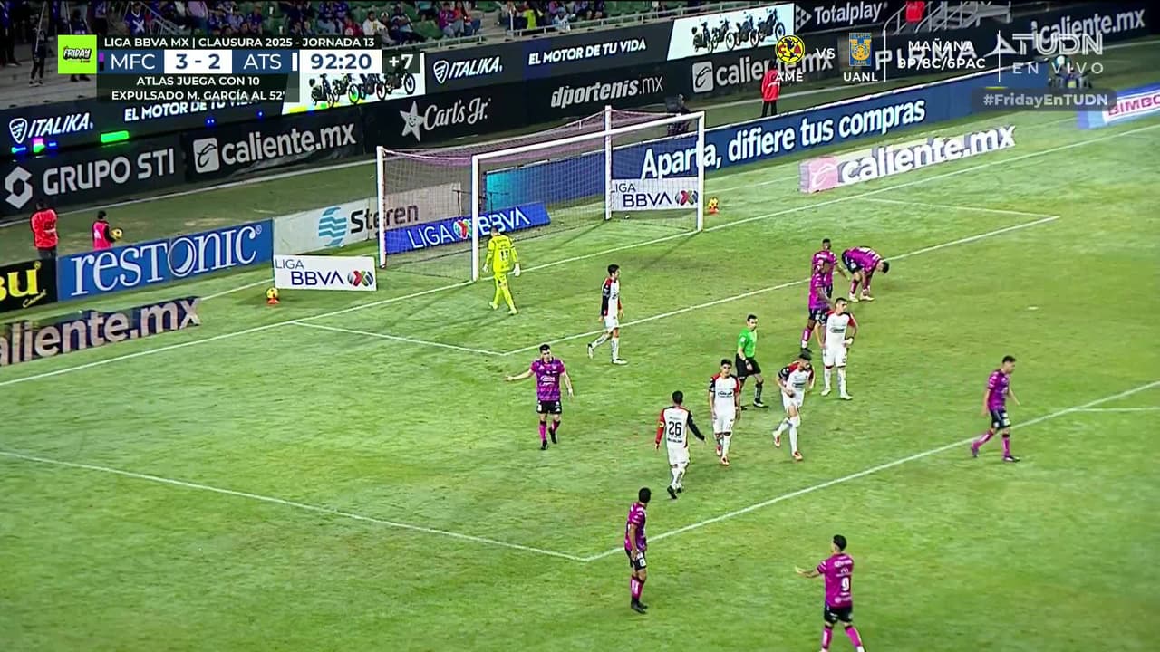 Víctor Ríos (Atlas) remata al poste izquierdo| Disparo con la derecha desde el lado izquierdo dentro del área.