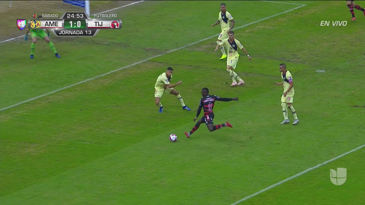 Castillo se encontró la pelota en el área grande, sacó un zurdazo y el balón pasó apenas abierto de la portería azulcrema.