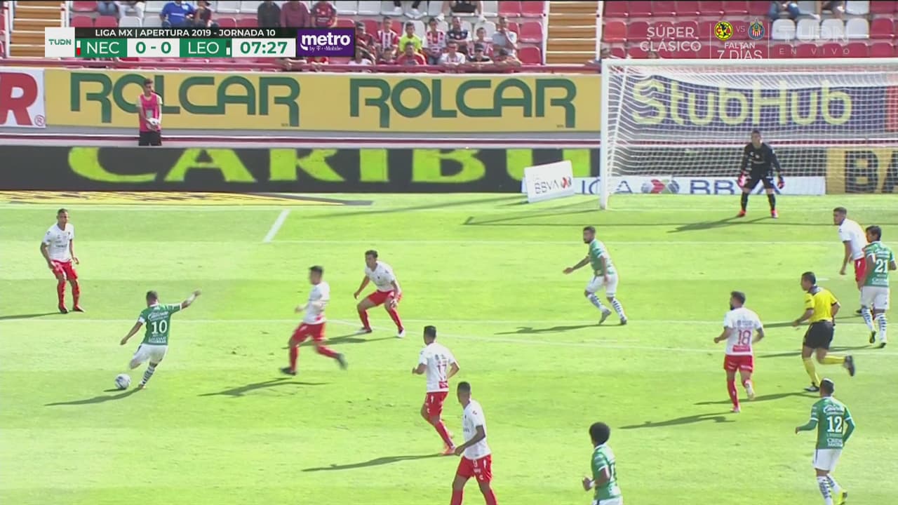 El '10' de León saca un disparo que inquieta sobre el arco de Necaxa.